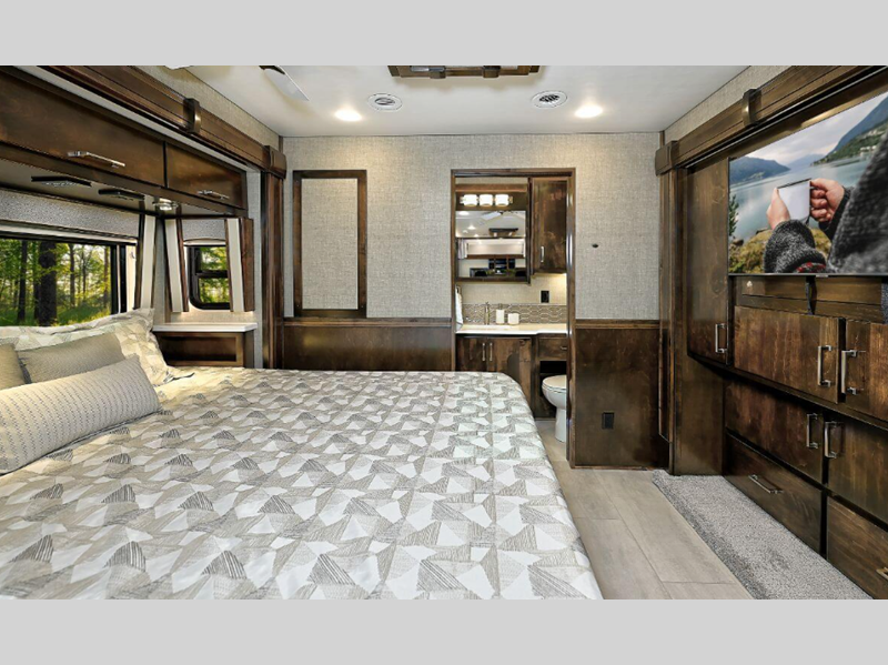 You will also get to choose between four available chassis with several transmission options; Freightliner Cascadia, Volvo VNR/VNL, Western Star, or Peterbilt. The choice is yours! There are many versatile floorplans to choose from, including garage and toter floorplans so you can bring along toys and more gear.