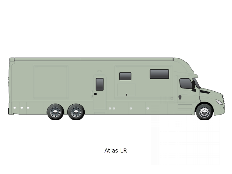 Sleeps 5 Slides 4 Length 43 ft 6 in Ext Width 8 ft 4 in Ext Height 13 ft 6 in Int Height 7 ft 6 in Interior Color Nordic, Pinnacle, Slate Exterior Color Eclipse, Meridian, Nebula, Solstice, Zenith, Polaris, Tundra, Atlas LR, Mojave Hitch Weight 30000 lbs GVWR 58000 lbs Fresh Water Capacity 150 gals Grey Water Capacity 75 gals Black Water Capacity 75 gals Generator 12.5 kW Onan Quiet Diesel Fuel Type Diesel Engine Detroit DD16 Horsepower 600 hp Fuel Capacity 120 gals Available Beds RV King Torque 1850 ft-lb Refrigerator Type Samsung Bespoke with Family Hub Refrigerator Size 23 cu ft Convection Cooking Yes Cooktop Burners 2 Number of Awnings 2 Water Heater Type AquaHot 600D Hydronic AC BTU 45000 btu TV Info LR 50" 4K Smart LED TV, BR 43" 4K Smart LED TV, Ext. 43" Smart LED TV Awning Info Roof Mounted Girard 2 Stage Lateral Arm w/LED Lights Washer/Dryer Available Yes Shower Type Standard Electrical Service 50 amp Similar Floorplans